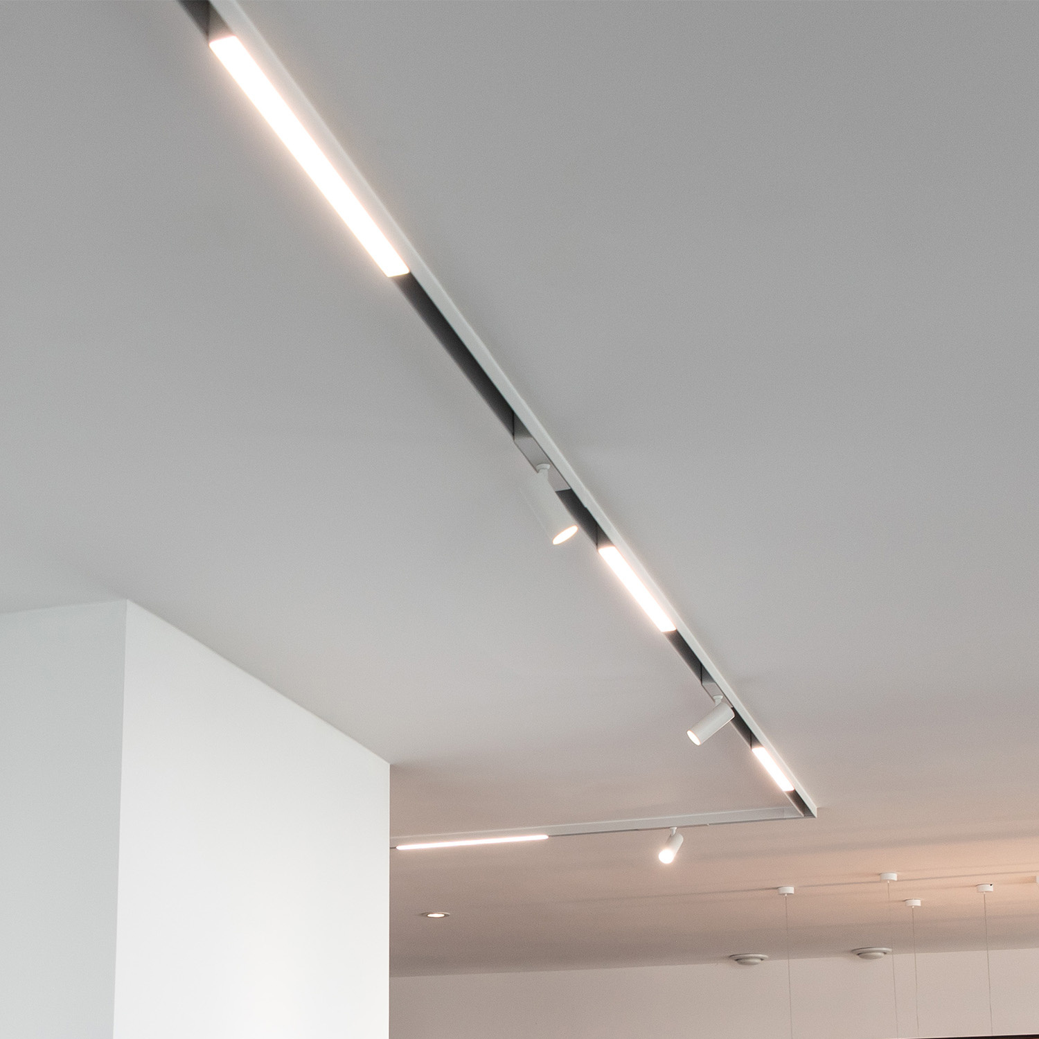 The CLIXX magnetic rail system offers the possibility to adjust color temperature and brightness. The LED modules are standard equipped with warm neutral light with a color temperature of 3000K. Also available on request in 2700K (very hot), 4000K - 5000K (cool). The CLIXX system is standard TRIAC dimmable (phase-cut), therefore it can be controlled with an LED wall dimmer without the need for additional control wires. The 1-10V option is offered for home automation solutions. With these options, the entire rail is dimmed.
