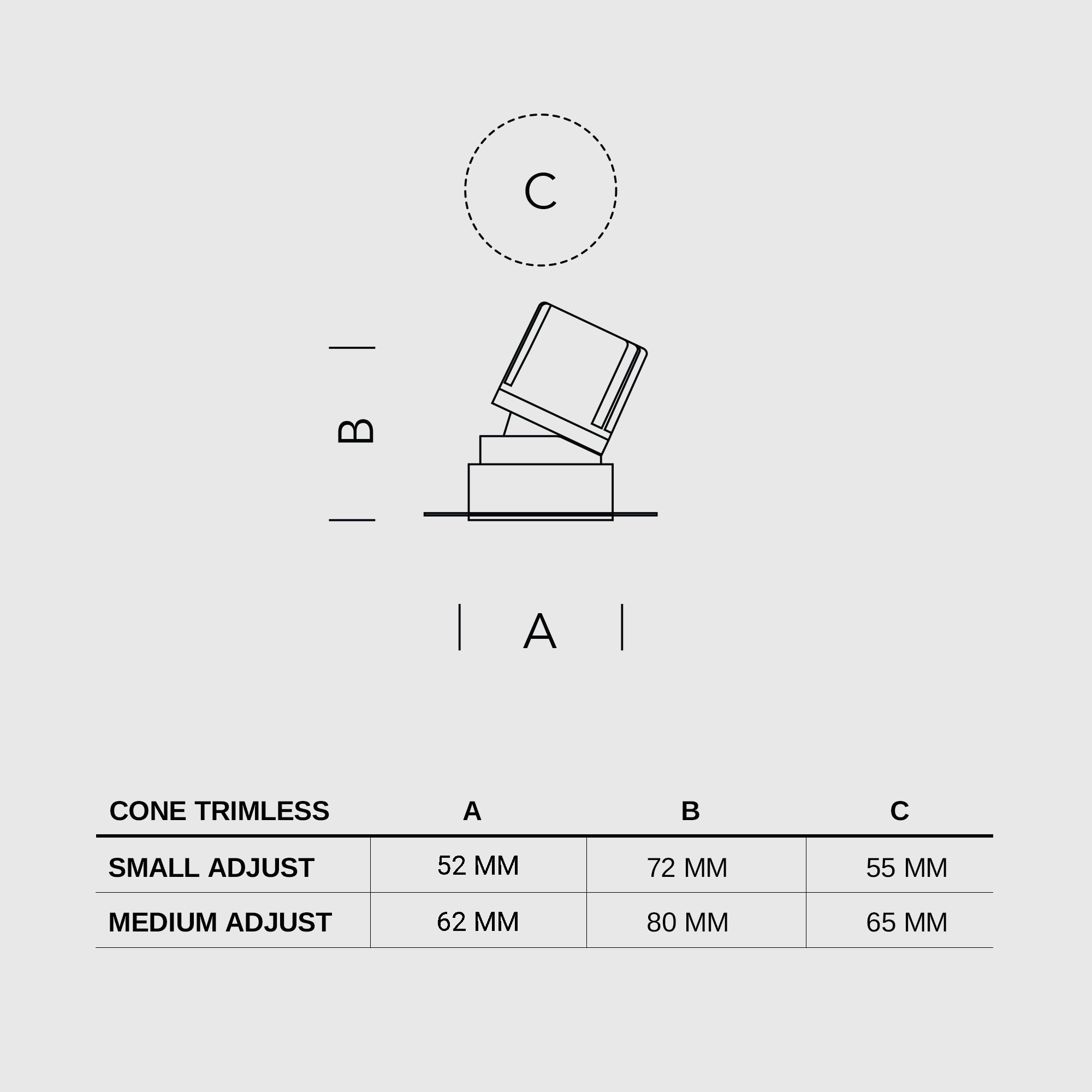 The CONE recessed spot owes its name to the cone-shaped reflector. The spot has a deeper placed LED light source, which reduces glare to a minimum. CONE contains a fixed or adjustable light module with optimal heat conduction, which guarantees a longer lifespan of the LED light source. CONE offers 2 rings for recessed mounting: a ring with a minimal trim and a trimless ring for a seamless transition with the ceiling.