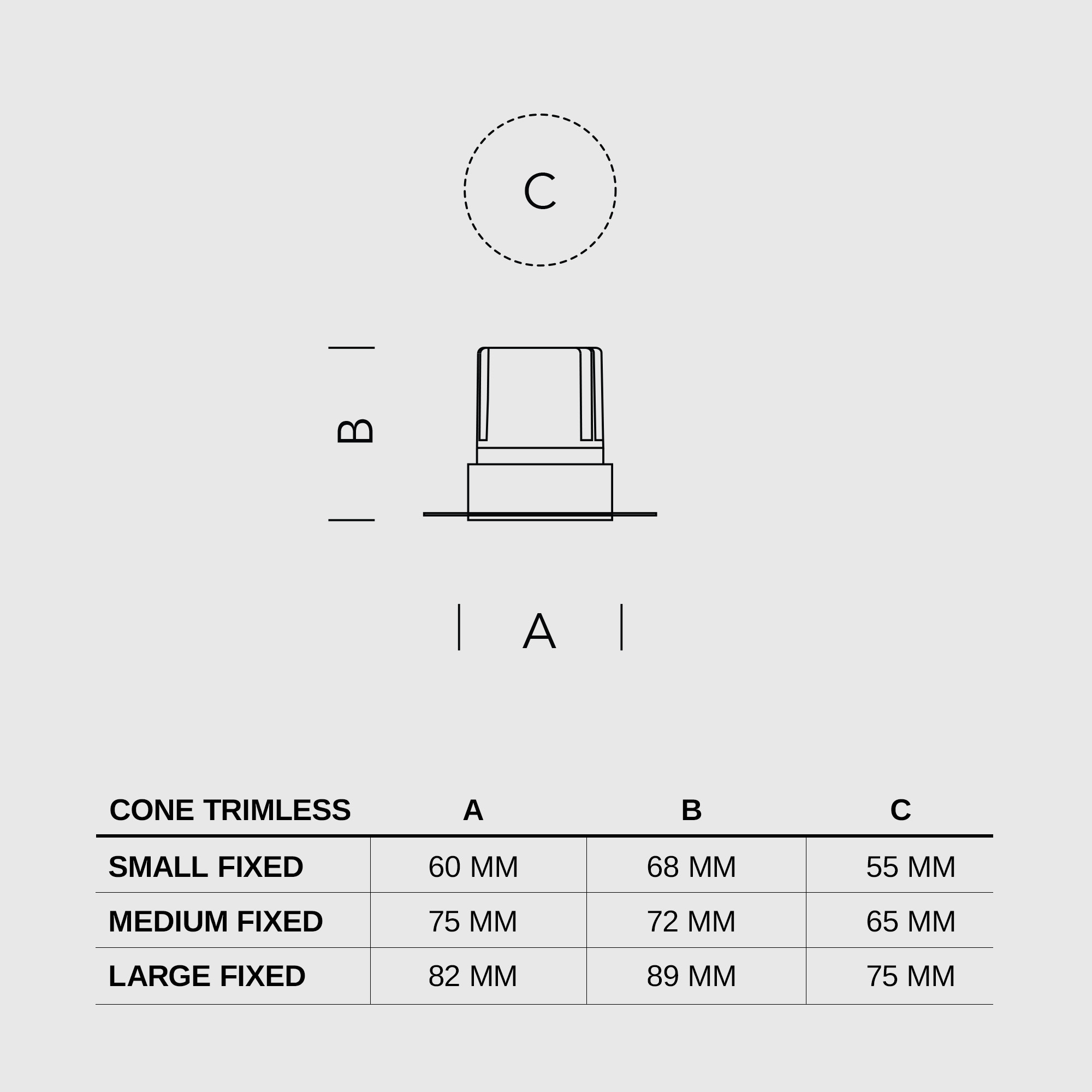 The CONE recessed spot owes its name to the cone-shaped reflector. The spot has a deeper placed LED light source, which reduces glare to a minimum. CONE contains a fixed or adjustable light module with optimal heat conduction, which guarantees a longer lifespan of the LED light source. CONE offers 2 rings for recessed mounting: a ring with a minimal trim and a trimless ring for a seamless transition with the ceiling.