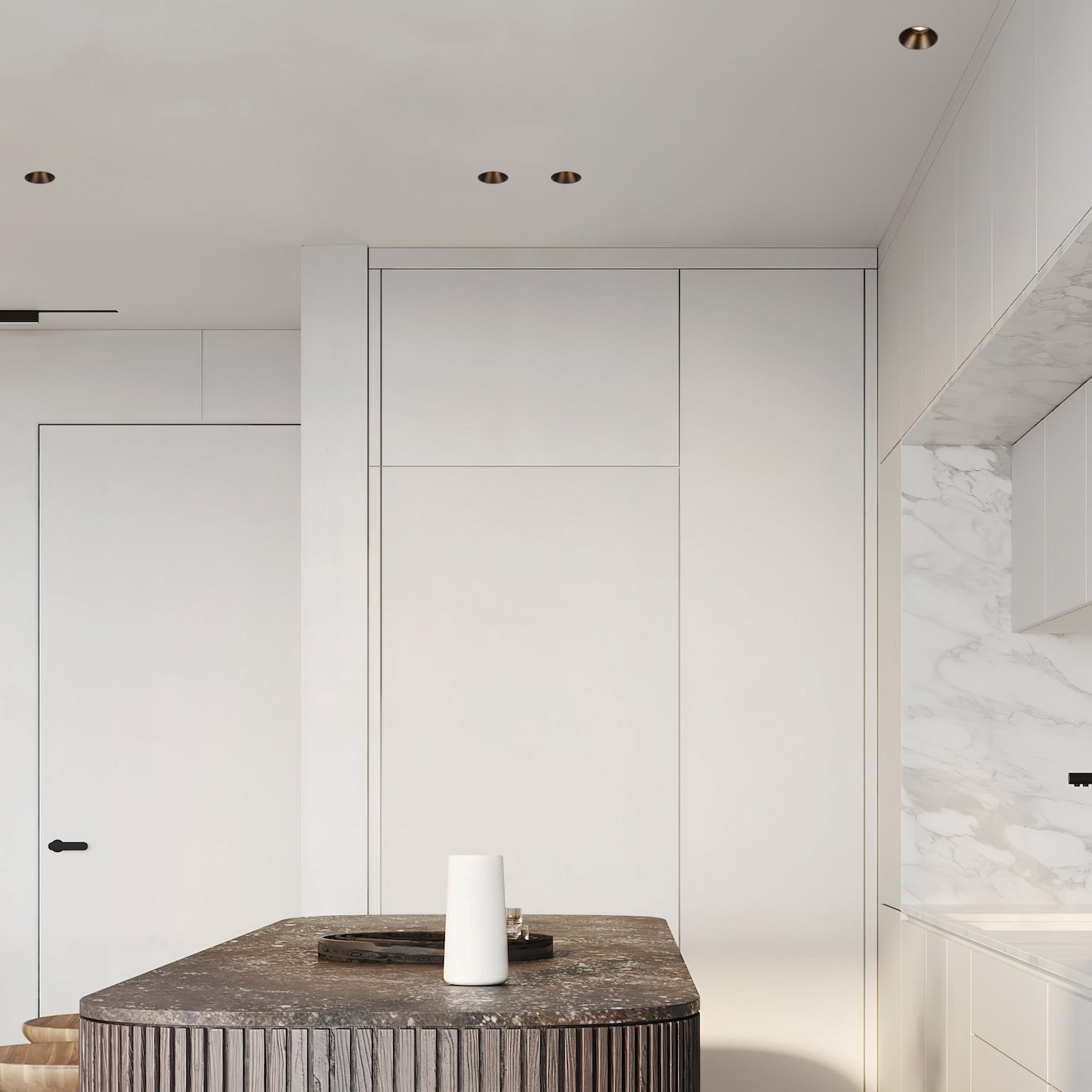 An iconic recessed spot with minimalist presence often placed in pairs of 2.