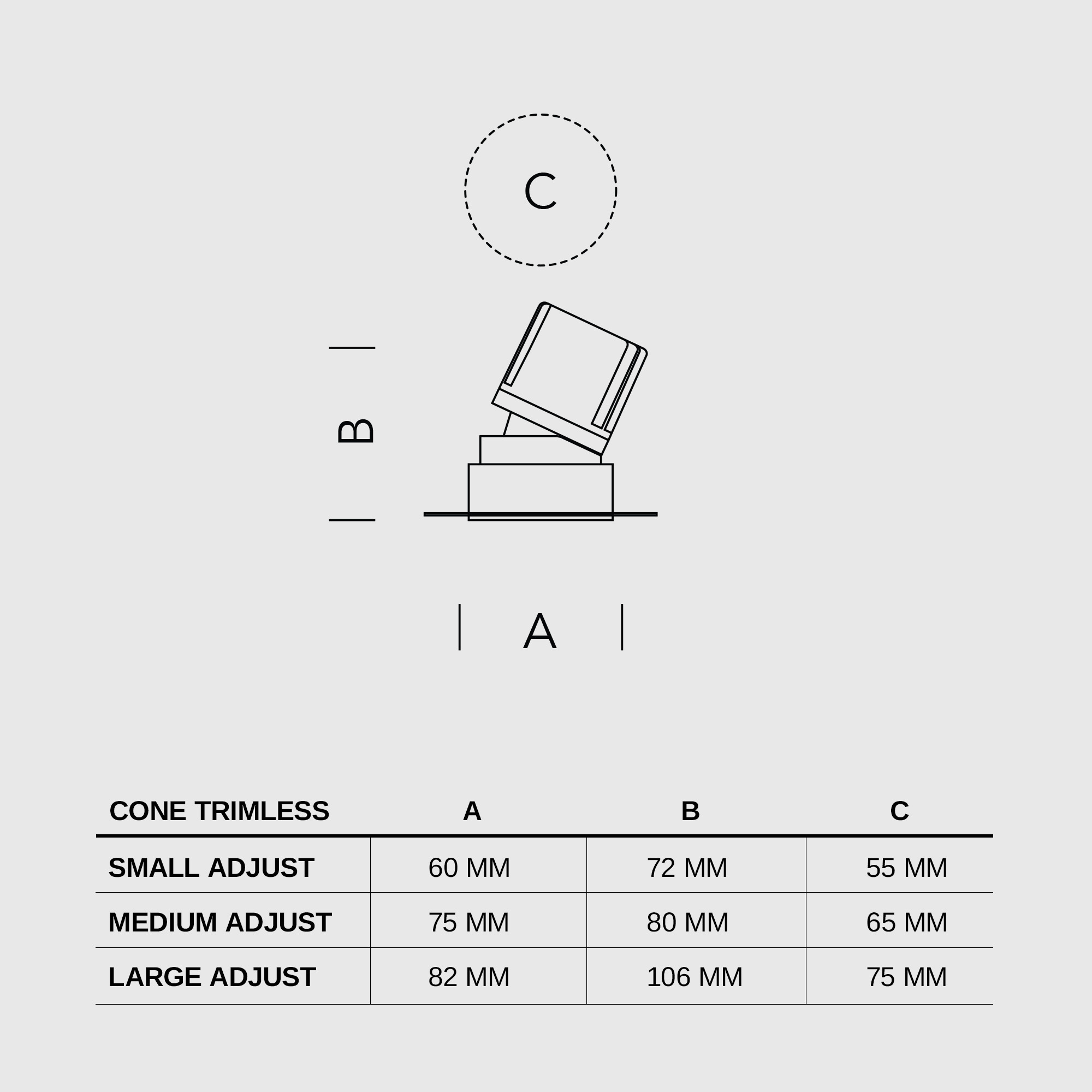 The CONE recessed spot owes its name to the cone-shaped reflector. The spot has a deeper placed LED light source, which reduces glare to a minimum. CONE contains a fixed or adjustable light module with optimal heat conduction, which guarantees a longer lifespan of the LED light source. CONE offers 2 rings for recessed mounting: a ring with a minimal trim and a trimless ring for a seamless transition with the ceiling.