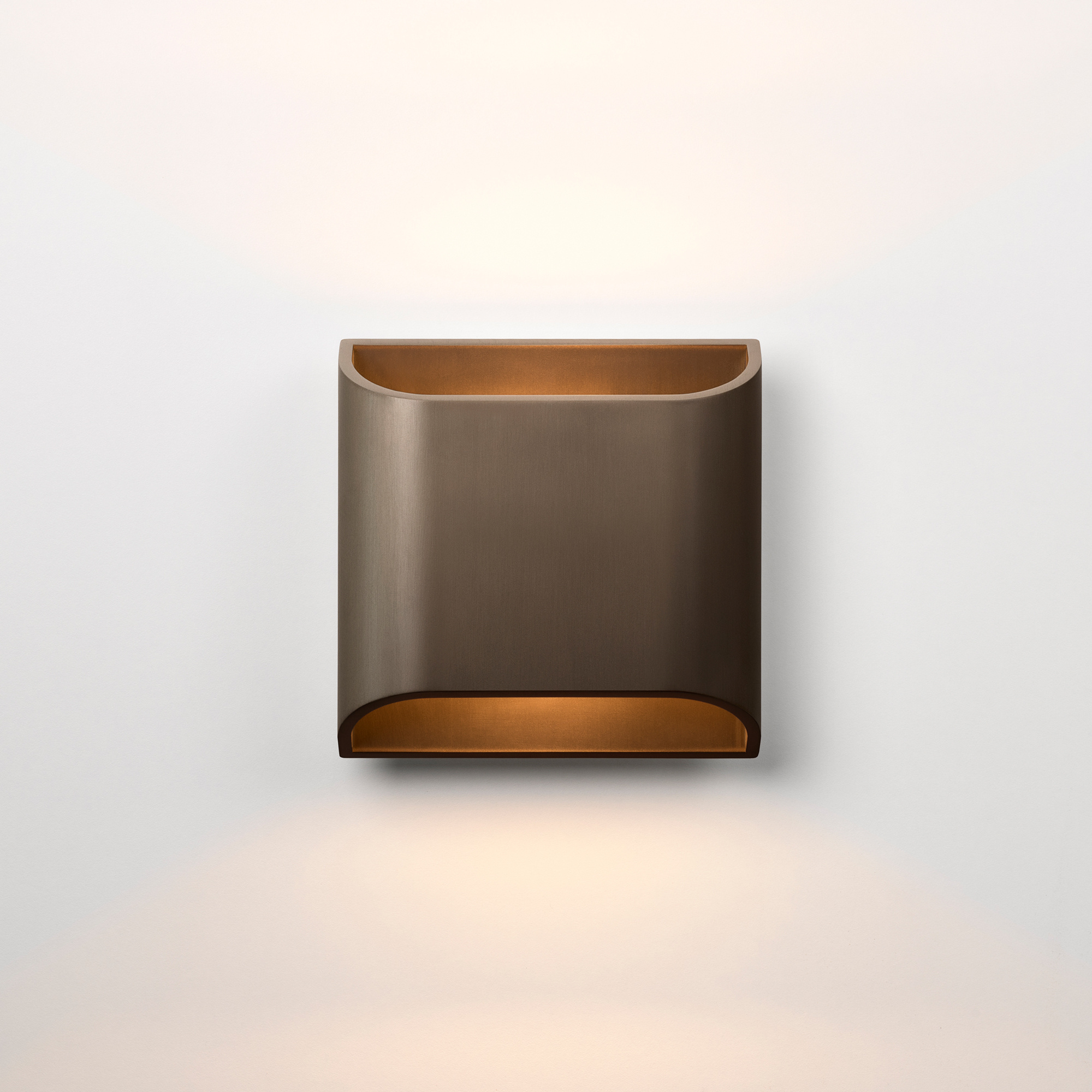 The light is projected upwards and downwards to emphasise the architectural surface. The sharp geometry of the cut enhances the perception of light, turning the fixture into both a functional element and a design statement.