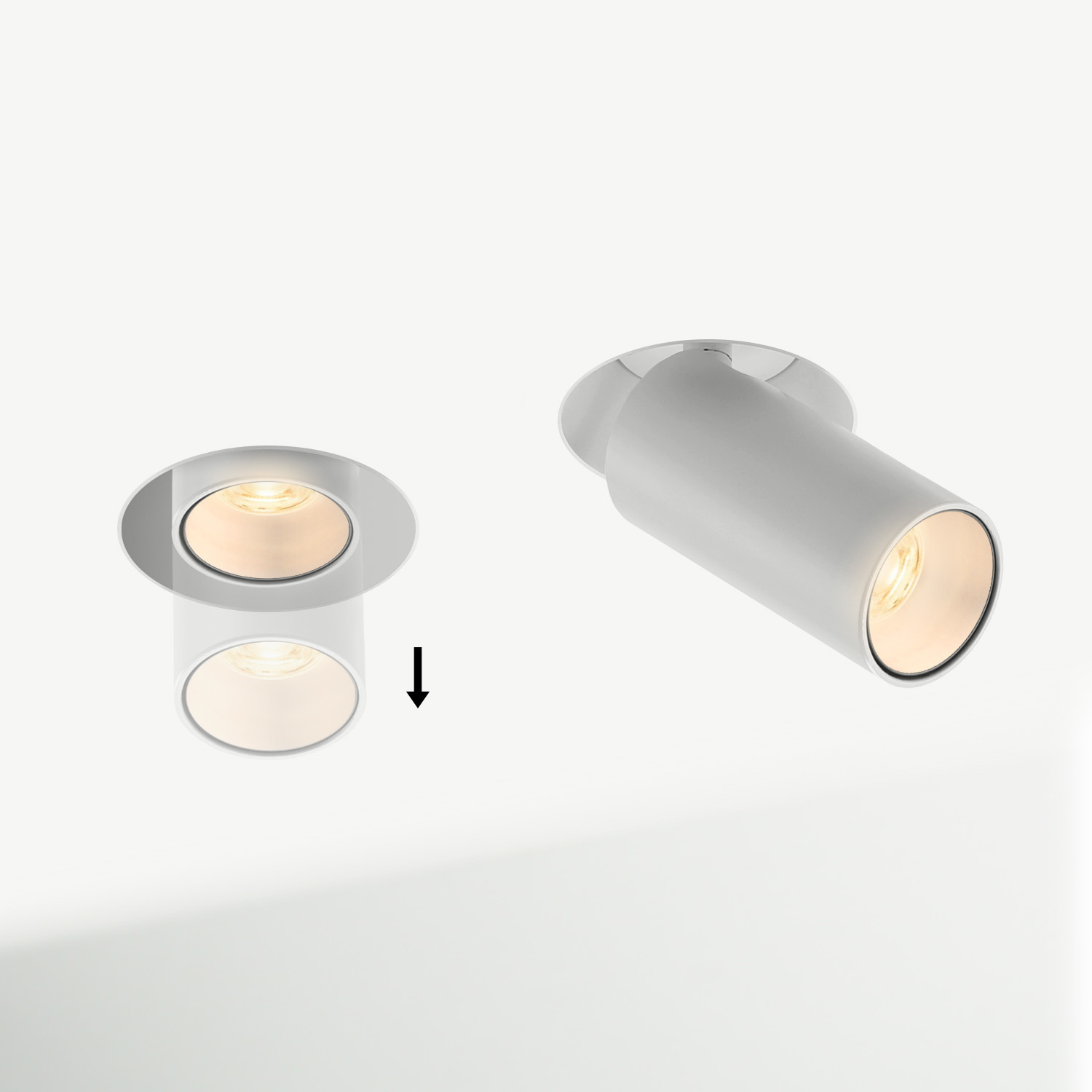 Our PEEK Recessed ceiling spot is characterized by its minimalist design. The spot has a dimension of 30 mm x 65 mm. The spotlights can be pulled out of the sleeve, which gives this spot several possibilities. Use the PEEK ceiling spot as spot by leaving it in the sleeve, pull the spot out of the sleeve for a spot that comes from the ceiling or tilt the spot to illuminate a cabinet wall. Because these PEEK ceiling spots are so minimalist, the do not immediately stand out and can therefore be used in any interior. These spots can be used in your living room, kitchen and bedroom, but also in hotels, restaurants, offices and other public spaces. The PEEK Recessed ceiling spot is equipped with an integrated LED light source and is therefore energy efficient.